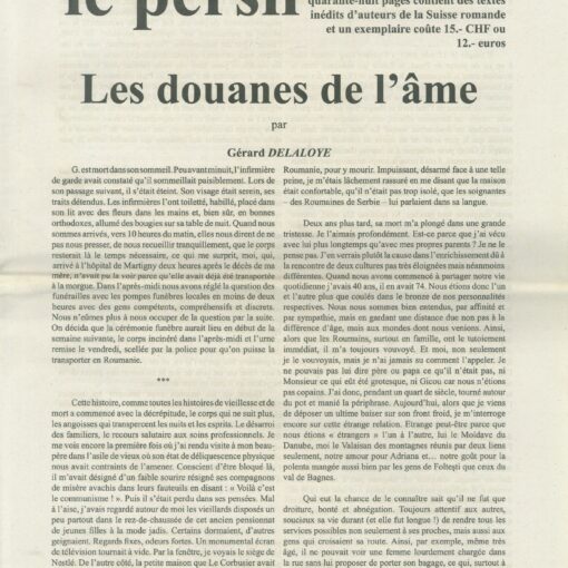 Journal inédit, cette fois-ci avec des textes de plusieurs autrices et auteurs de Suisse romande, le persil est à la fois parole et silence; ce deuxième numéro spécial est double et coûte FRS 5.-