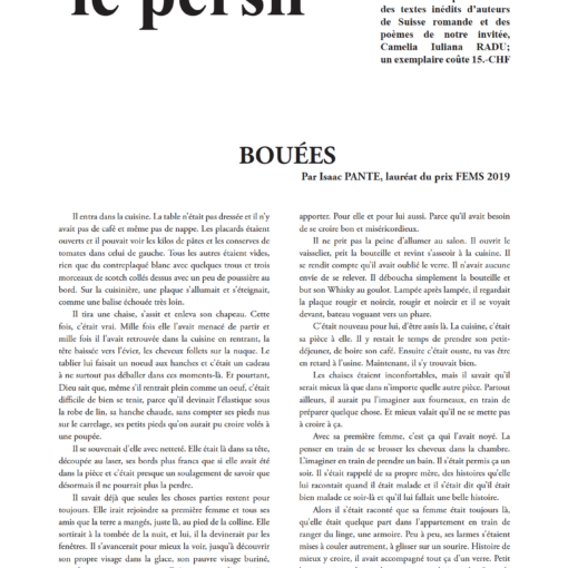 Journal inédit, ce numéro spécial, le persil numéro quinze, qui contient aussi des photos de Roger Plaschy et des textes d’élèves du Gymnase de Morges, coûte FRS 6.-.