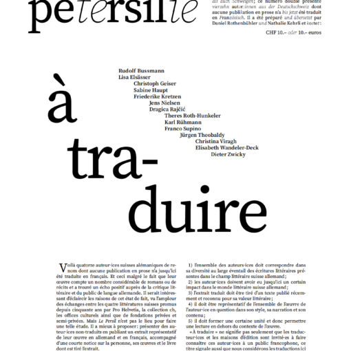Journal inédit, le persil est à la fois parole et silence; ce numéro simple contient des textes d’Antoine Jaccoud et coûte 5.- CHF ou 4.- Euros.
