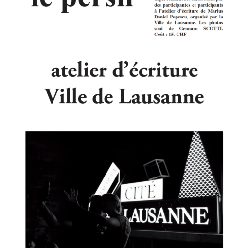Avec les soutiens de la Maison des écrivains et de la littérature (Mel) à Paris et des Amis du journal le persil. Tiré exceptionnellement à 8000 exemplaires, dont 2000 offerts à la Mel et 3000 au Centre culturel suisse de Paris.