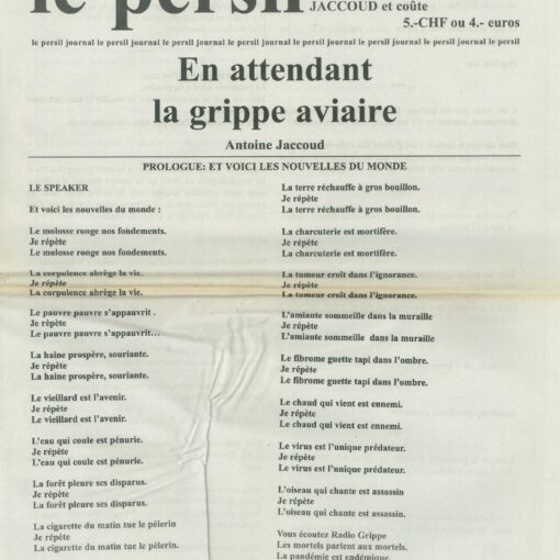 Journal inédit, le persil est à la fois parole et silence. Ce numéro simple a été réalisé par Daniel Vuataz et Joséphine Maillefer. Il contient des lettres du couloir de la mort et fait entendre les voix des détenus. Il est illustré par Benjamin Maillefer et coûte 5.- CHF ou 4.- Euros.