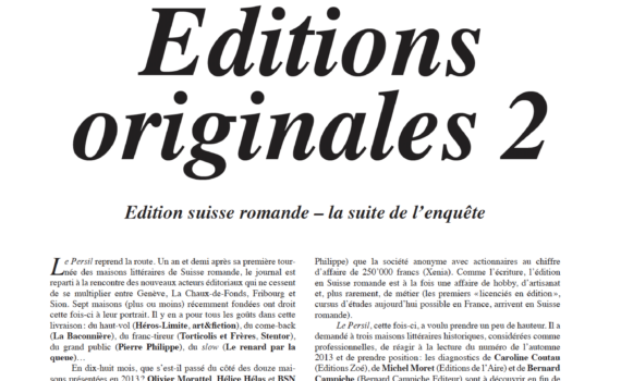 Journal inédit, le persil est à la fois parole et silence. Ce numéro double contient la suite de l’enquête menée depuis l’été 2013 par Vincent Yersin & Daniel Vuataz auprès des éditeurs de Suisse romande. Il présente les portraits de sept nouvelles maisons et coûte 10.- CHF ou 10.- Euros. […]