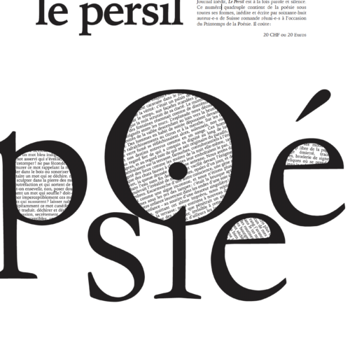Journal inédit, le persil est à la fois parole et silence; ce numéro triple contient des textes inédits d’auteurs de Suisse romande et deux nouvelles de notre invité, Jean-Pierre Longre; un exemplaire coûte 15.- CHF.