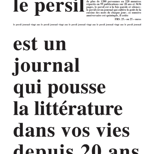 Article paru en allemand sur : https://cültür.ch/a/20-jaehriges-jubilaeum-der-literaturzeitschrift-le-persil