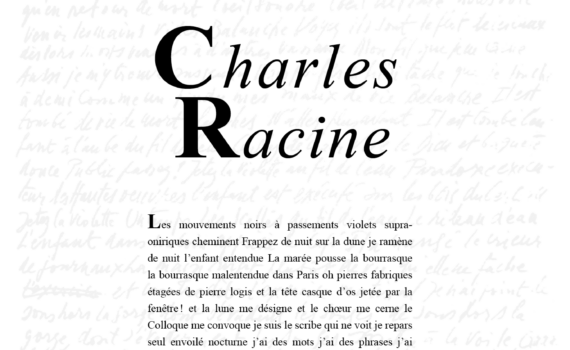 Journal inédit, le persil est à la fois parole et silence. Ce numéro double est un hommage du professeur André Wyss au poète jurassien Charles Racine (1927-1995). Il coûte 10.- CHF ou 7.- Euros. Novembre 2013, 28 pages. Avec des textes inédits du poète; contributions d’André Wyss, Philippe Rahmy et […]